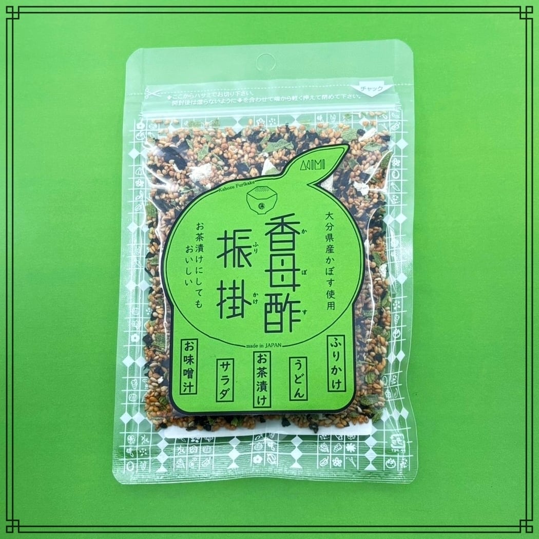 香り高い体験をお届けする大分県産香母酢振掛(かぼすふりかけ)は、ふんわりとしたかぼすの香り。