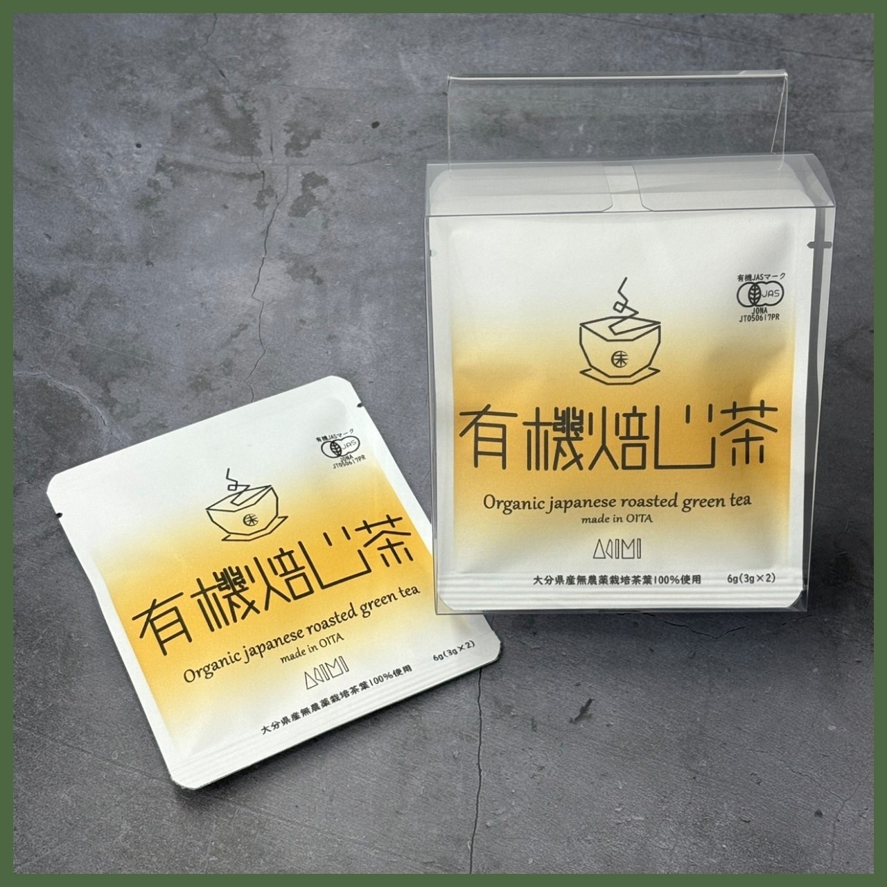 有機ほうじ茶の個包装パッケージ5個入りです。